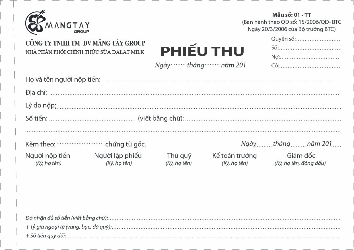 Quy cách in phiếu thu, chi, biên nhận, biên lai tại Đại Nam Thành