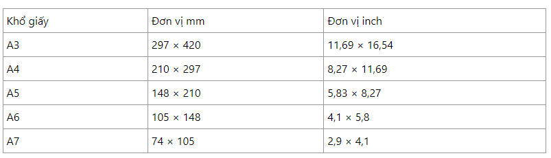 Kích thước phổ biến trong in giấy hướng dẫn sử dụng